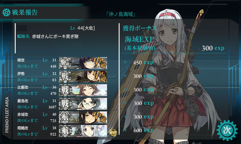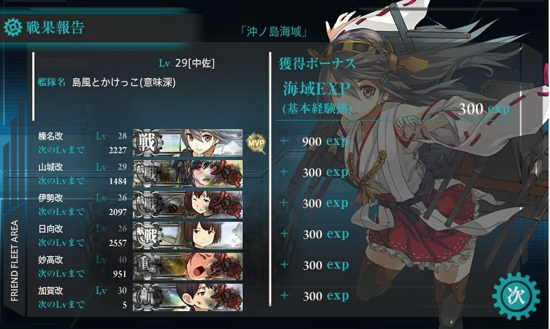 遠征回しつつ2-4と3-1一気にクリアしたら1日で大佐から中将になっちまった