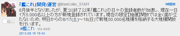 1万5000人/日で増えて、毎日5000人消化しているので現在の待ち提督は4万近いのかな?