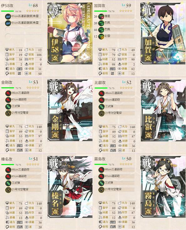 潜水艦コンビで削りの後、主力艦隊は以下の通り。