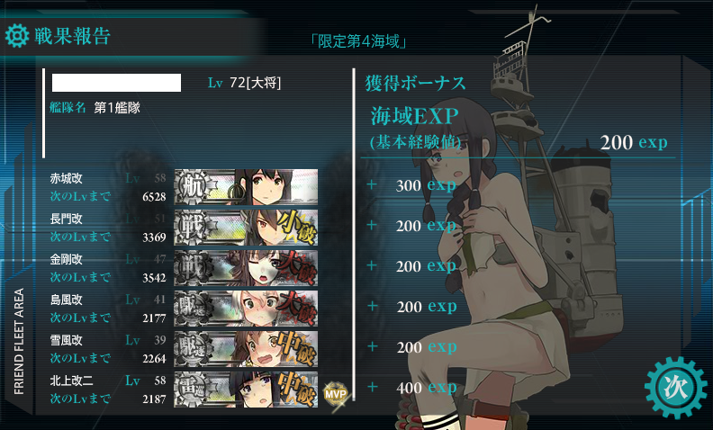 しかしうちの長門さんと雪風さんがカットインでそれぞれ130と220程度叩きだして北上様まで回ること無く倒した