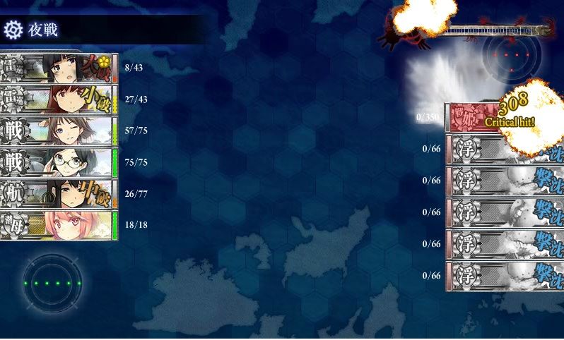 決戦支援でいきなり敵戦艦1と浮1を轟沈させ、昼で更に削って残りは戦姫と戦艦のみ