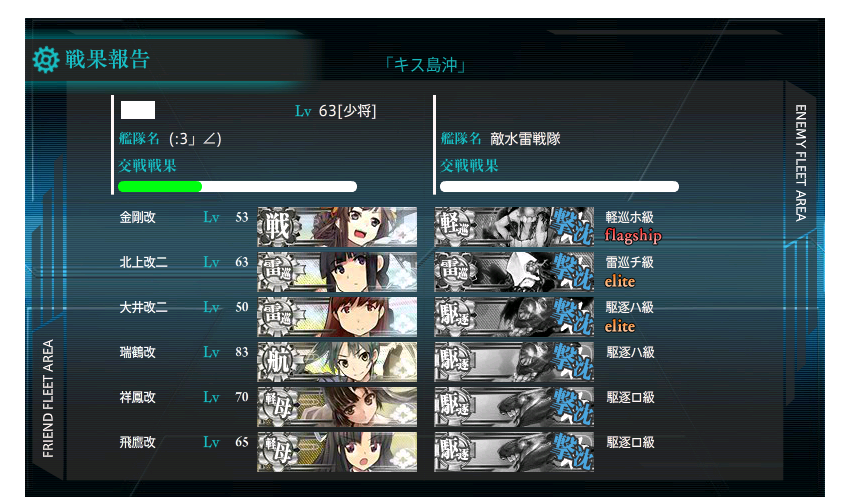 敵艦もしっかり対潜ムードです 3-2-1は多分この3編成に変更っぽいですね