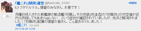 「初風改」配備の提督の皆さん、ご心配おかけしました!