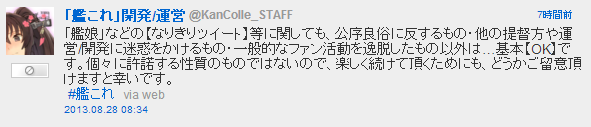 「艦これ」の同人誌やイラスト・コスプレ等の【同人活動】は、現在のところ、