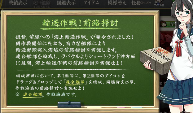 E1に出撃すると「輸送作戦参加」札が艦娘に付き、E4に参加不可能になります