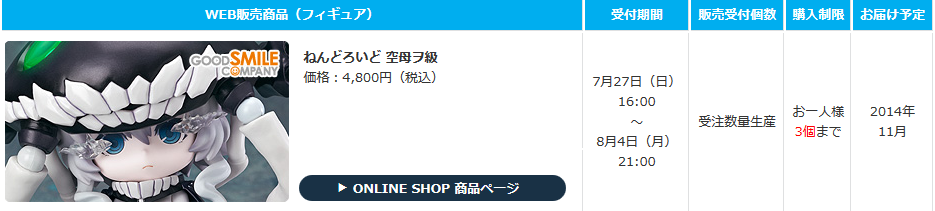 それぞれ受注は2014年7月27日(日)16:00から2014年8月4日(月) 21:00まで受付