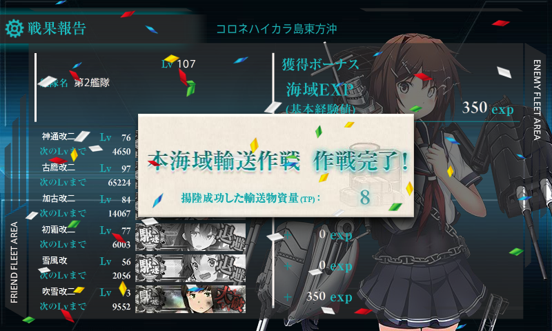 E3に出撃すると「輸送作戦参加」札が艦娘に付き、E4に参加不可能になります