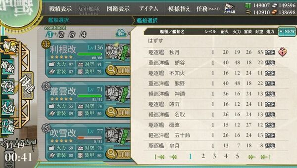 E1、E2の輸送作戦に参加した艦も編成可能