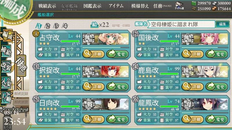 戦艦、空母系なしの軽めの編成:Qマスが高確率に?