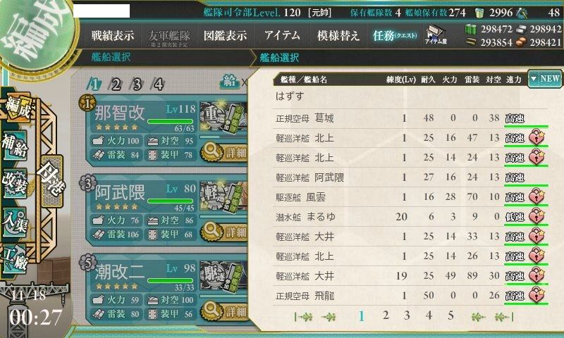 艦娘空き枠5隻以上