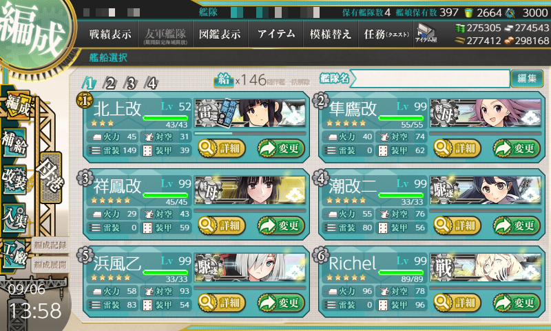艦娘空き枠5隻以上