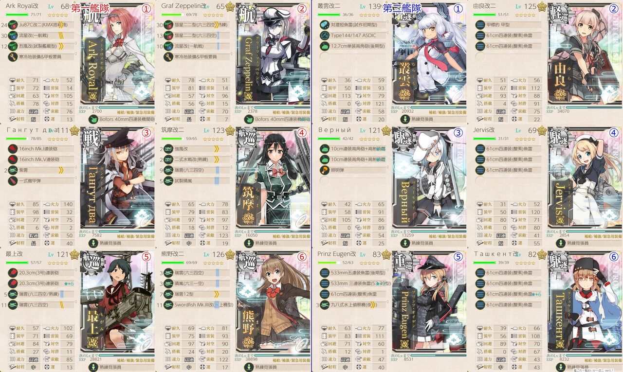 艦娘空き枠5隻以上装備空き枠20個以上
